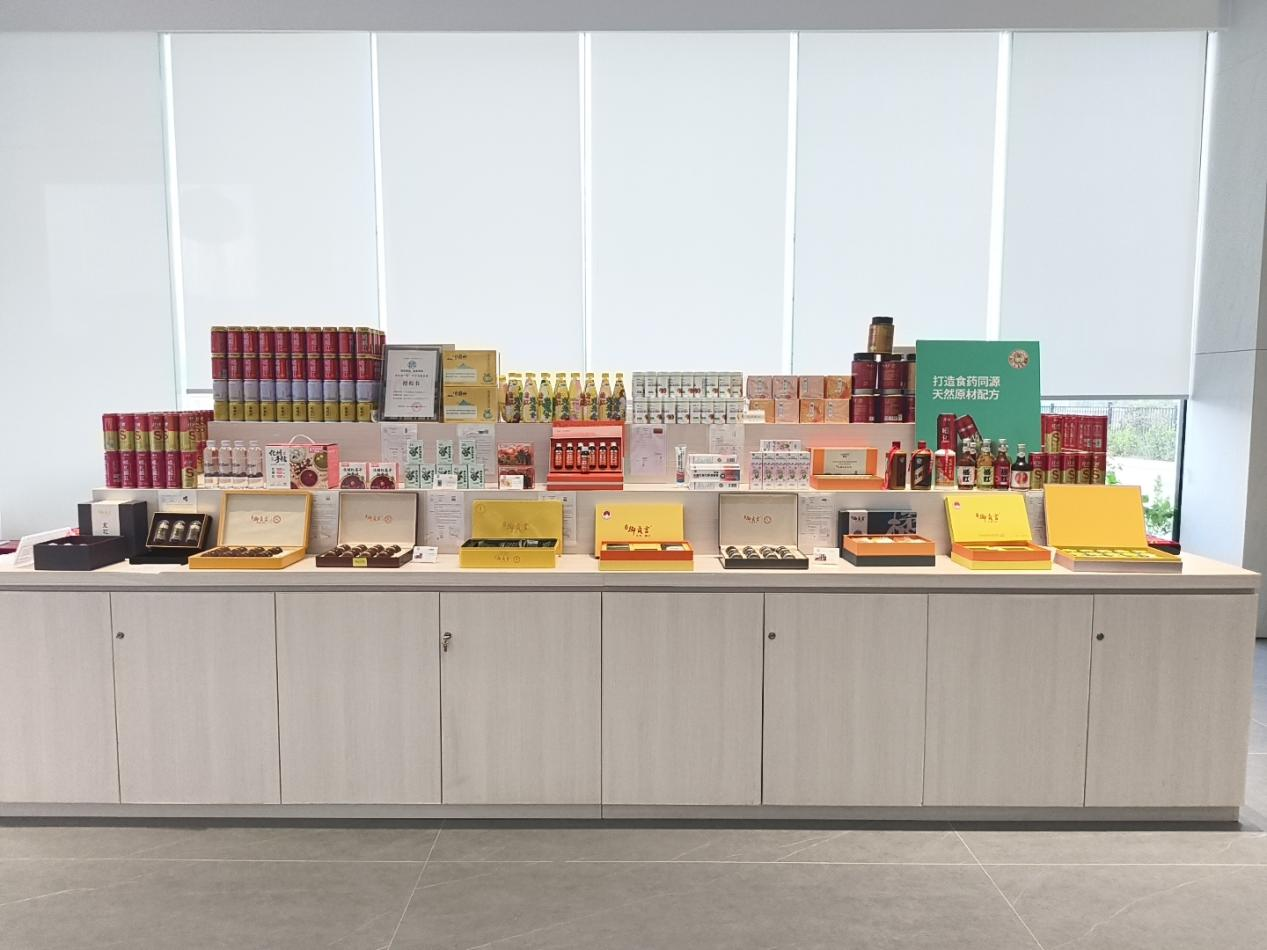 平定镇培林化橘红种植专业合作社里陈列展示的化橘红产品琳琅满目。